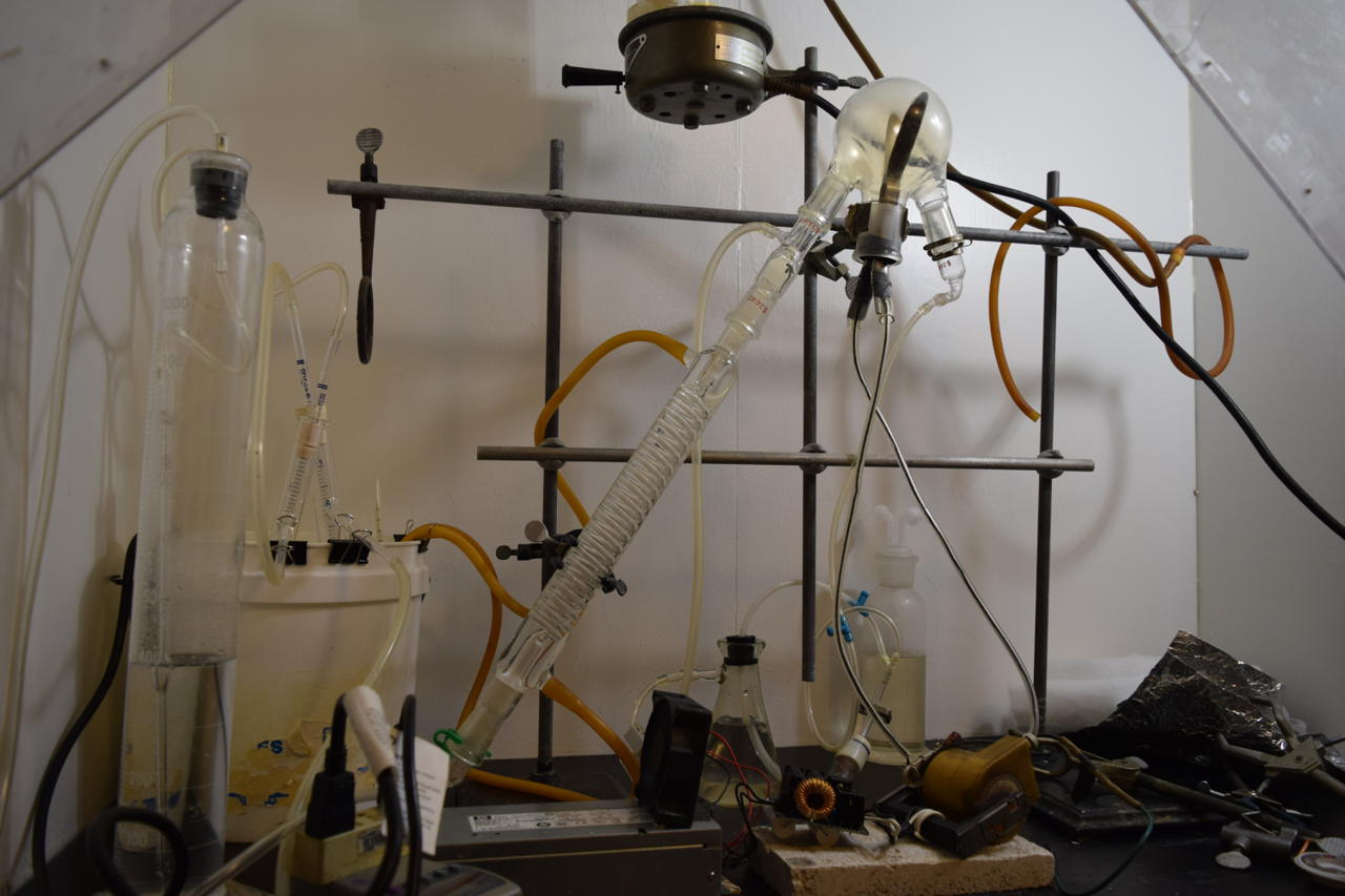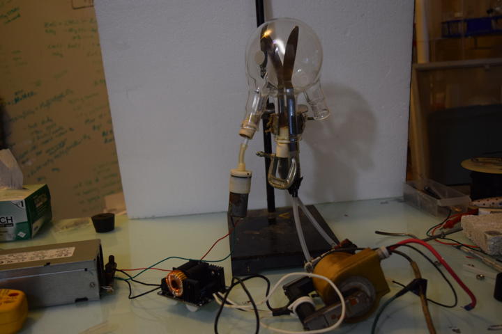 Setting up for a longer run of the glidarc reactor… The arc is just too unstable in this rigged configuration. I’m going to try to make a legitimate glidarc reactor.