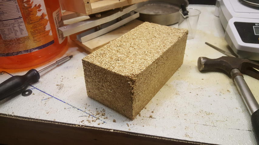 I was unable to compress the brick sufficiently to use all of the mix. Next batch should be 3-4oz less. For the surface of this brick (~40 sq. in), over 2000 lbs of pressure is needed for appropriate compression.